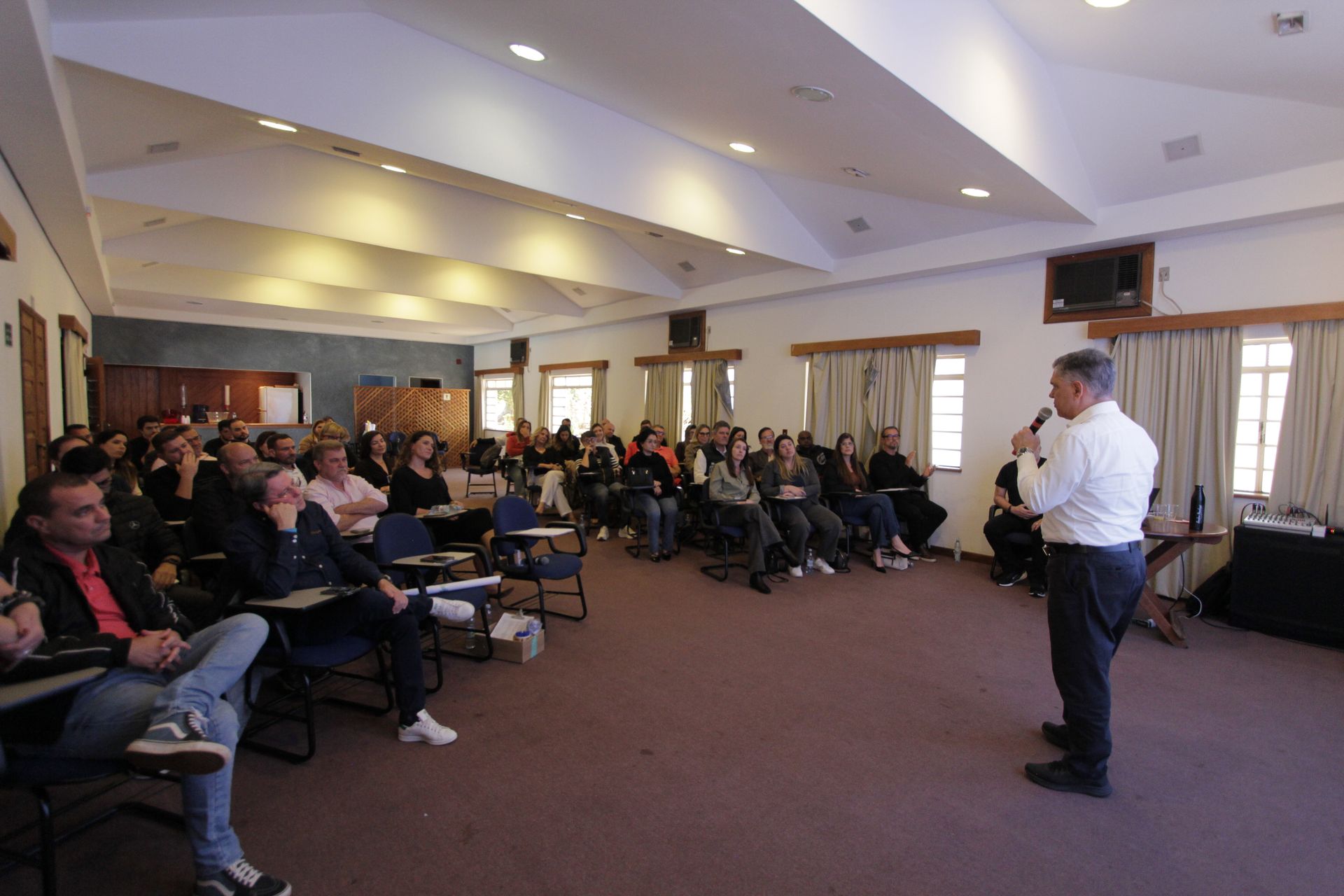 Com o tema central voltado para a Cultura Organizacional, a palestra foi conduzida de forma didática e dinâmica pelo especialista Edson de Paula, proporcionando reflexões valiosas sobre o papel da liderança na promoção de um ambiente corporativo alinhado e engajado.